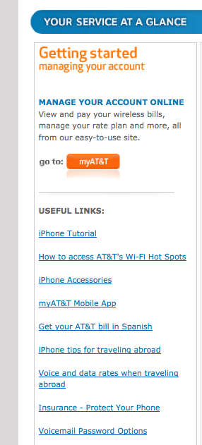 And then I receive this post-sale email from AT&T with the subject line Let’s Talk about your new iPhone. In the body they offered links to a host of helpful tools: